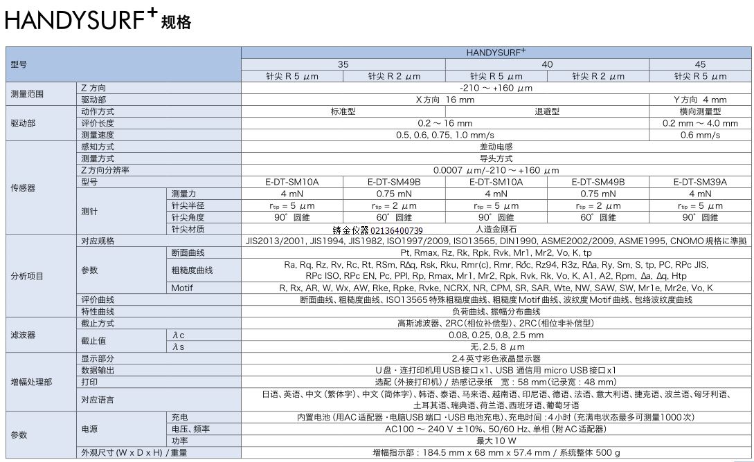 东京精密便携式表面粗糙度测量仪HANDYSURF+参考规格: