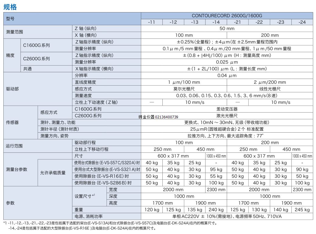 东京精密轮廓形状测量机CONTOURECORD 1600G/2600G规格:
