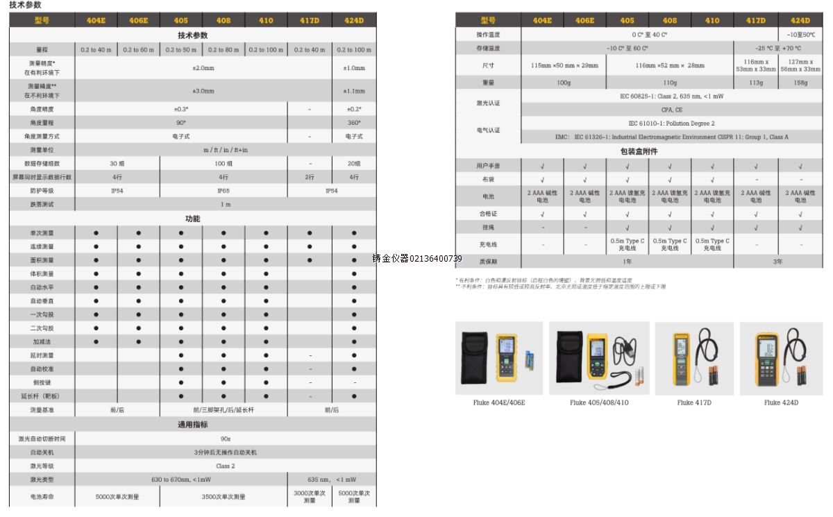 Fluke 404E 406E 405 408 410 激光测距仪
