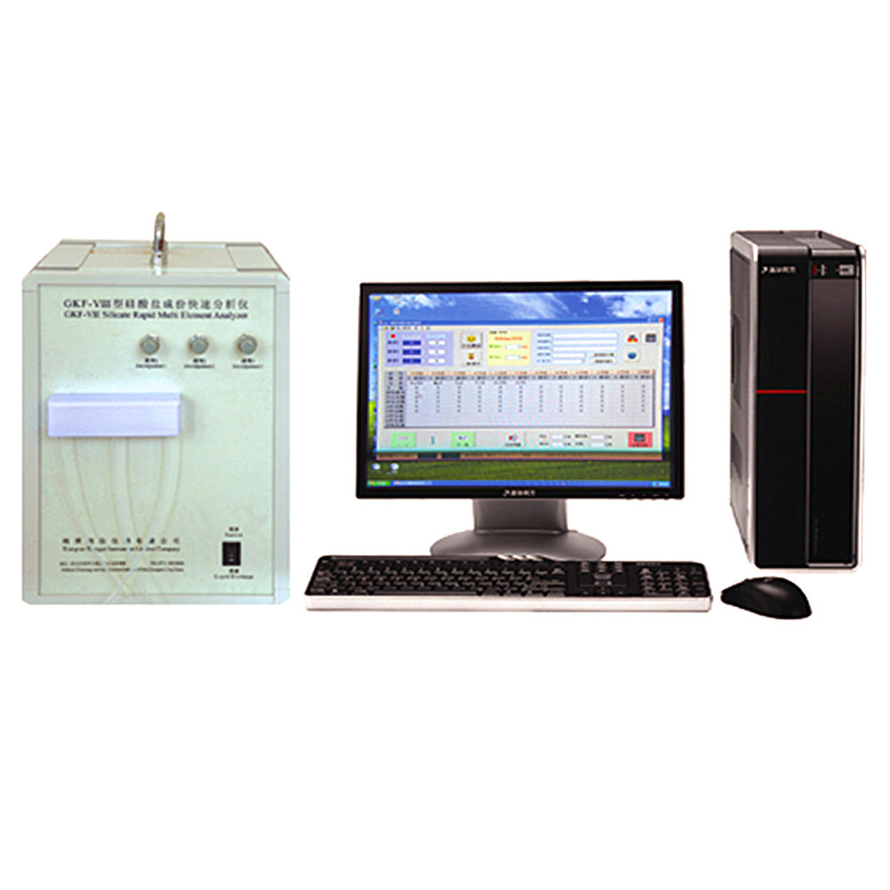 ★硅酸盐化学成份快速分析仪GKF-VIII多元素分析仪概述: GKF型系列硅酸盐成份快速分析仪是针对硅酸盐行业长期以来采用重量法、容量法、分光光度法、火焰光度法及原子吸收光度法联合进行材料的化学分析时流程长,不能满足生产工艺控制要求而研制的。可在数小时内完成一个样品的全分析,其分析准确度达到或优于硅酸盐材料国家相关分析方法标准中对分析精度的要求。在硅酸盐系统分析领域具有一定优势,特别适应于陶瓷、耐火材料、水泥、玻璃等非金属行业和钨、钼、镍、钴、铜等有色金属及冶炼行业的定量分析。该产品在大专院校、科