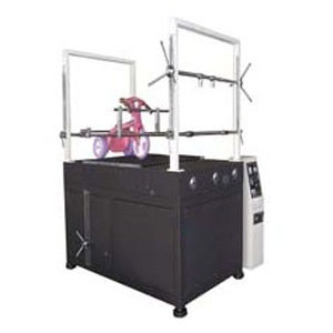 双转轮童车寿命试验机产品概述:本试验机专用于测试各种童车(如不同尺寸之四轮车、三轮车、两轮车、室内手推车等)之使用寿命。其测试方法是:将试车固定于测试台上,设定测试所需之时间,并调整测试所需速度。试验时间到达后,试验机自动停机,目视车台有无任何损坏。本机在设定时间到达后能自动停止操作,且装有电子安全眼装置,具备在任何不良运行状态下停机功能。双转轮童车寿命试验机技术参数:转轮测试速度:1-10公里/小时之间任意调节滚轮直径:250mm,外表面达到一定粗糙度双转轮间距调节范围:12-35英寸定时器:LCD六位