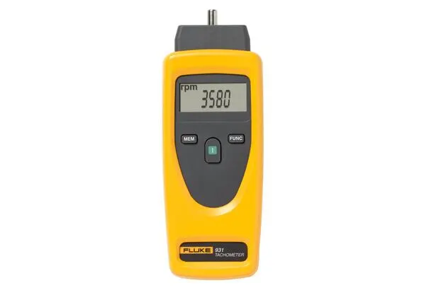 产品概述: Fluke 931 转速计Fluke931 转速计是一款手持式转速计,可以准确地测量每分钟转数 (RPM) 或表面速度以及距离。本款转速计集成接触式和非接触式两种测速功能,使用“红外光束功能可进行非接触式转速测量;如使用连接适配器和可选择的测速头,则可进行接触式转速测量。 “存储功能允许保存最大读数 (MAX)、最小读数 (MIN)、平均读数 (AV) 以及最后读数。 光学(非接触)测量转速:1至99999转/分接触测量转速:1至19999转/分 精度: 0.02 % 读数 + 1 个字 光学