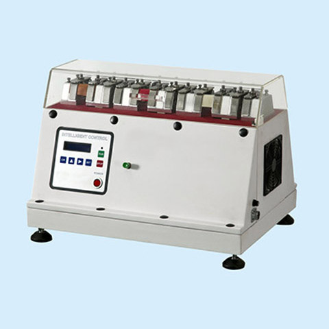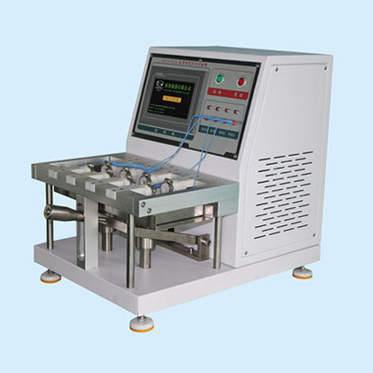 皮革动态防水试验机产品概述:针对鞋面使用之原料,如:皮革、人造皮、布料……等,裁取试片,装置于试验机上,围有水之下,施以挠折动作,以测知材料耐渗透指数,或为研发改良材料、防水加工之依据,具有断电记忆功能。皮革动态防水试验机执行标准:GB/T3903.17,GB/T20091,ISO17702,ENISO20344 DIN53338,SATRA TM71 皮革动态防水试验机技术参数:1.测试件数:4组2.测试位移:2,3,4,6mm(可调)3.试片尺寸:7060mm4.体积:406050cm5.重量:约55