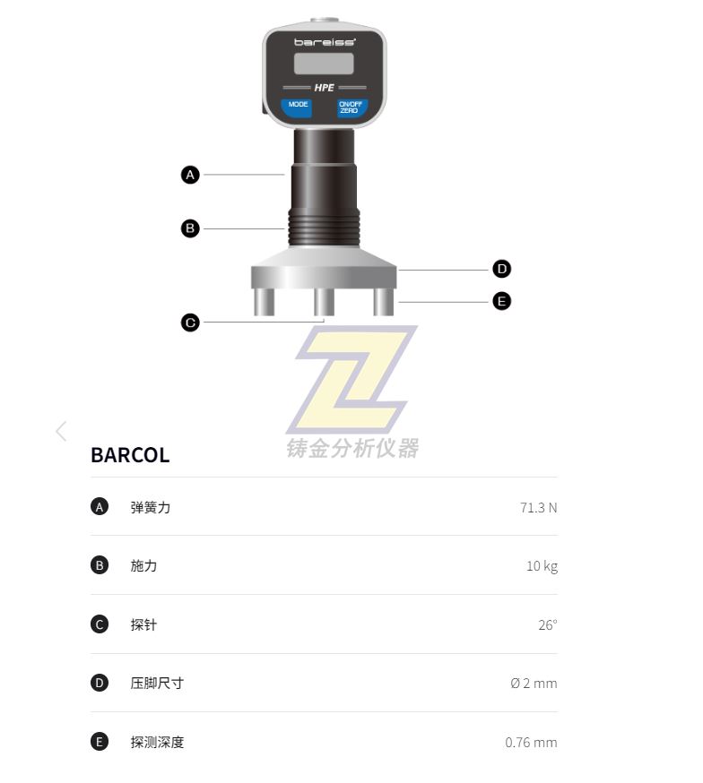 相关说明:上海铸金分析器有限公司可根据用户的实际情况,提供“巴氏硬度计”相关方案。本站信息仅供参考,相关产品可能存在已停产、升级、变更等情况,不保证相关信息的及时、准确。本公司支持新广告法及其它法律法规,已尽量避免相关词语及违法违规信息,但页面众多信息较早,某些词仅是在某特定时期、特定环境、限定范围内的描述,请勿误解。当然,也不排除录入错误、漏删、被恶意攻击篡改等可能性。为避免误解,在此郑重声明,上海铸金分析仪器有限公司所有网页上的绝对化用词与功能性用词全部失效。如您介意,敬请忽略相关文字、联系铸金更改或直接离开本站。更多信息可阅读本站首页(或 关于铸金 菜单下)“网站声明”。如您对“HPE II Barcol数显巴氏硬度计”有需求可联系铸金或厂家获取更新更准确信息。