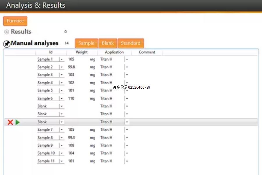 然后将空石墨坩埚放置在下电极上,通过ELEMENTS软件点击开始,进行元素分析。软件会控制随后所有的分析步骤。